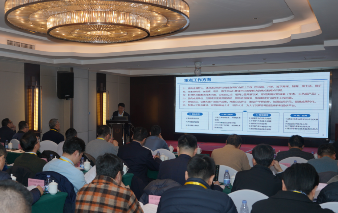 邵龙潭主任从总体目标、重点工作规划和主要举措三个方面,系统汇报了专委会2026年的工作计划。他表示,2026年专委会将坚守为矿山企业服务的根本宗旨,以推进行业岩土工程技术进步为核心,全面开展各项工作:一是聚焦岩土工程领域技术难题,组织攻关并征集推广技术成果;二是深入矿山企业开展实地调研,准确把握生产实际需求;三是积极推进先进适用技术的转化与应用,切实解决企业面临的实际问题。专委会还将围绕行业发展中的痛点与难点,进行关键技术的专项课题研究,持续促进行业技术水平的整体提升,为推动矿山行业高质量发展提供支撑。