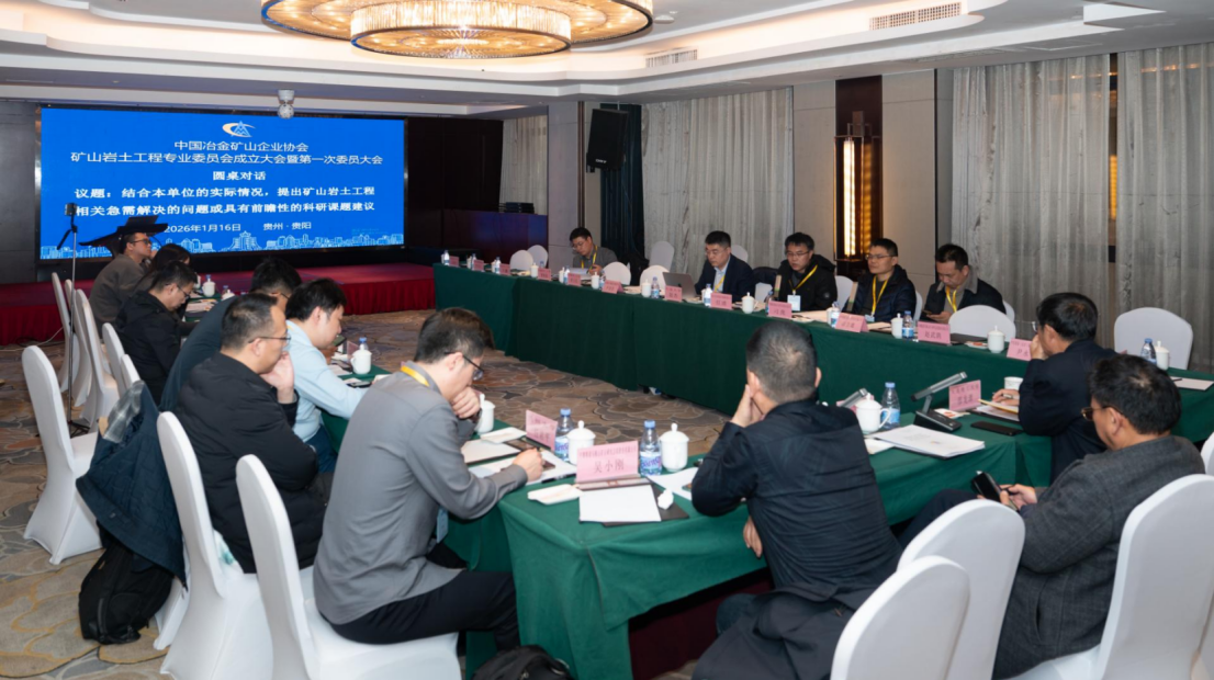 2026年1月15日至16日,中国冶金矿山企业协会矿山岩土工程专业委员会(以下简称专委会)成立大会暨第一次委员会在贵州省贵阳市召开。中国冶金矿山企业协会(以下简称中矿协)副会长姜圣才、贵州理工学院副校长安艳玲、贵州理工学院土木工程学院副院长张志俊,以及来自冶金矿山企业、科研院所、高等院校的委员代表齐聚一堂,共同见证了专委会的成立,并围绕矿山岩土工程领域的技术创新与产业发展展开了深入交流。大会由姜圣才副会长主持。