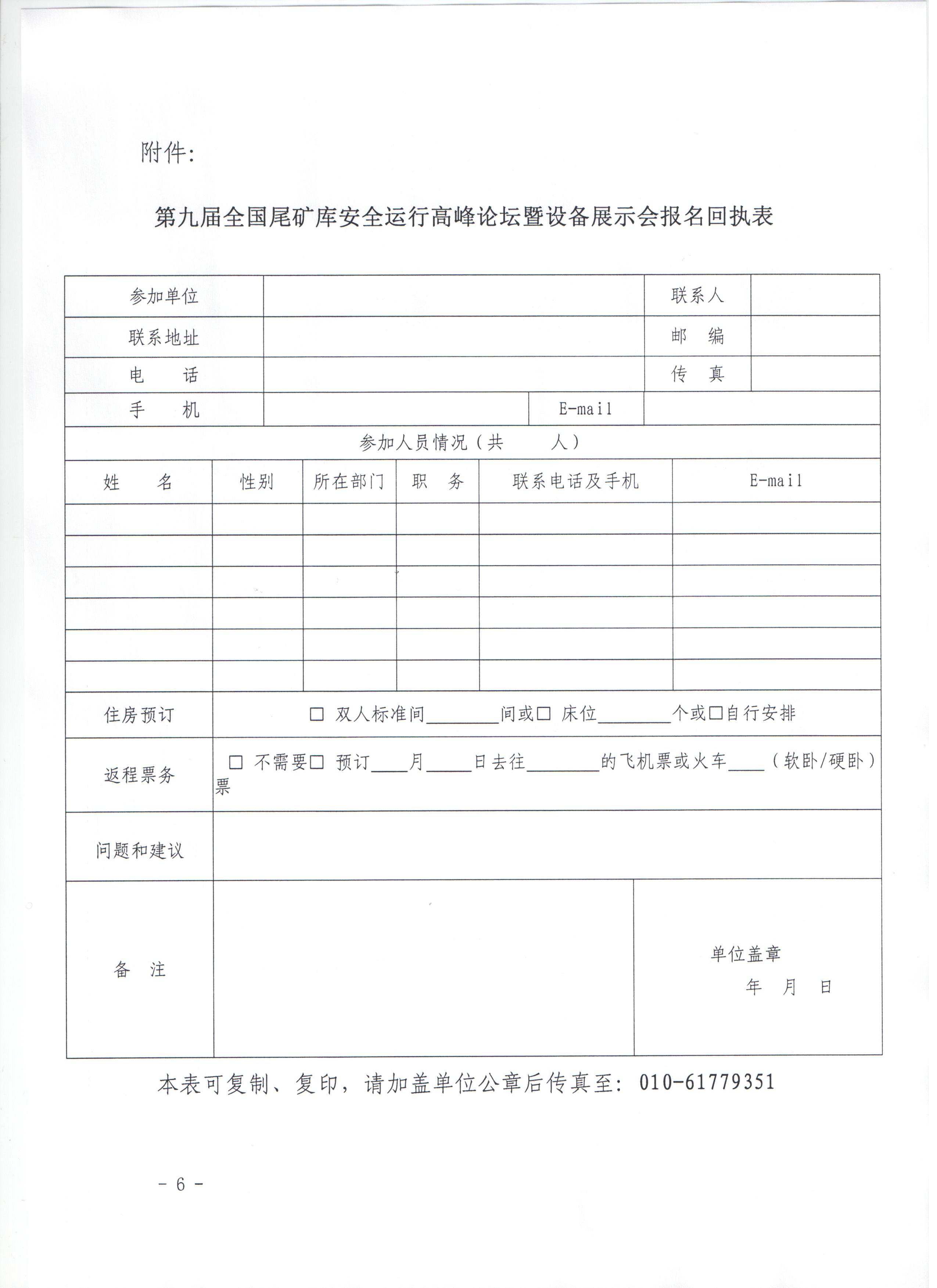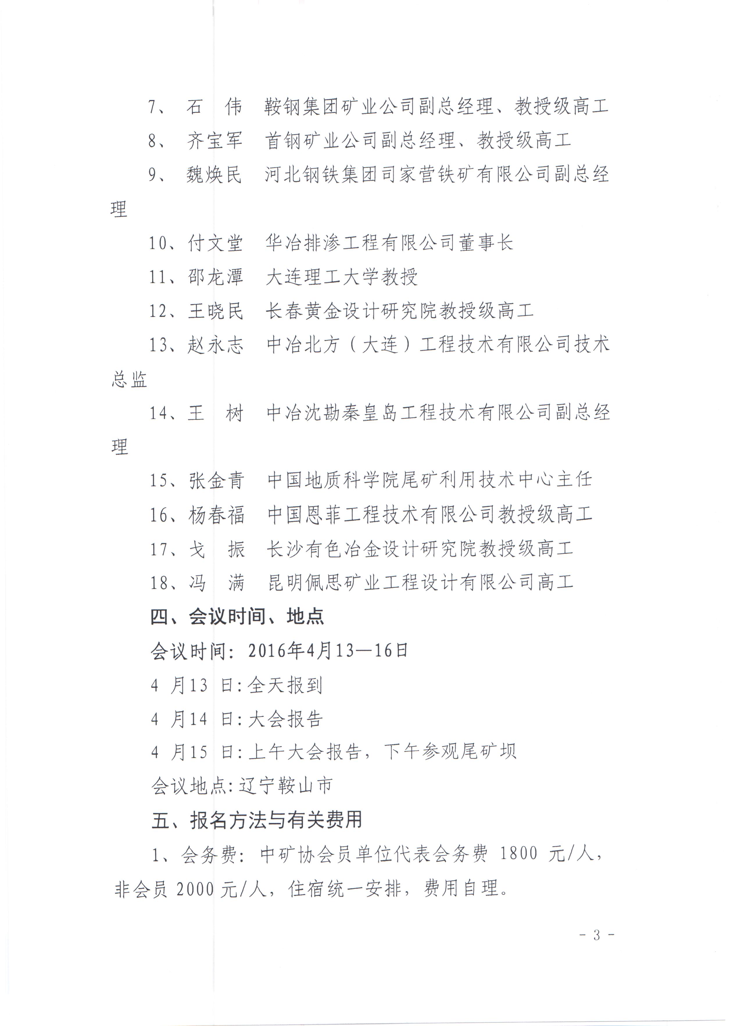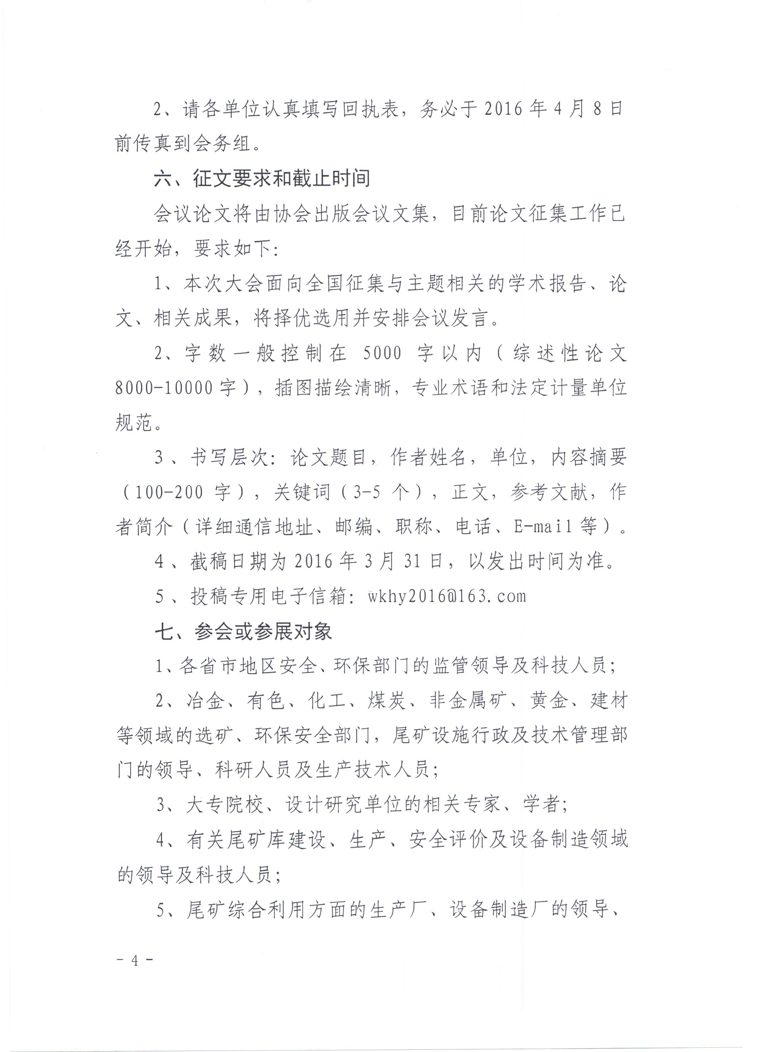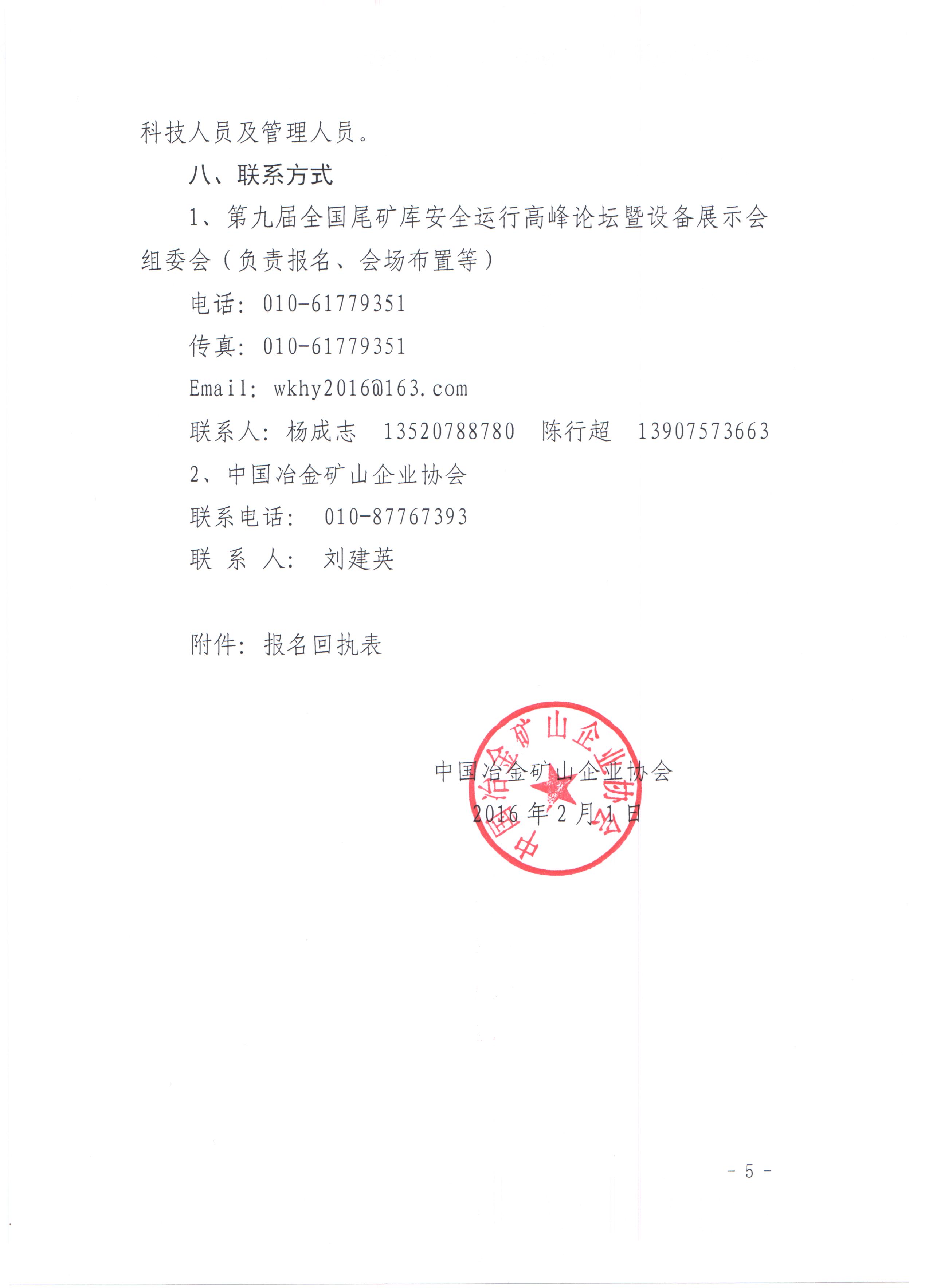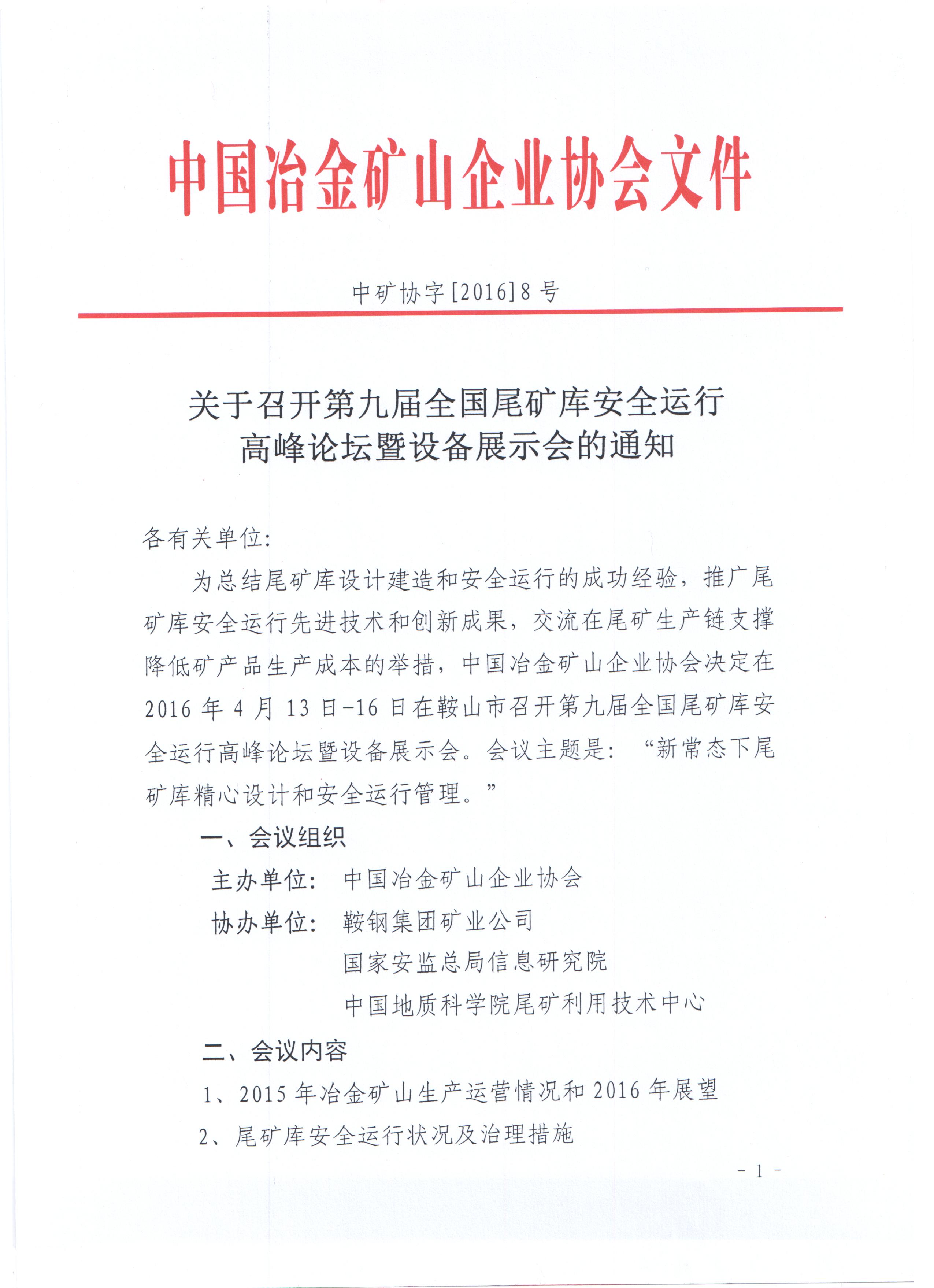 关于召开第九届全国尾矿库安全运行高峰论坛暨设备展示会的通知 中矿协字[2016] 8号