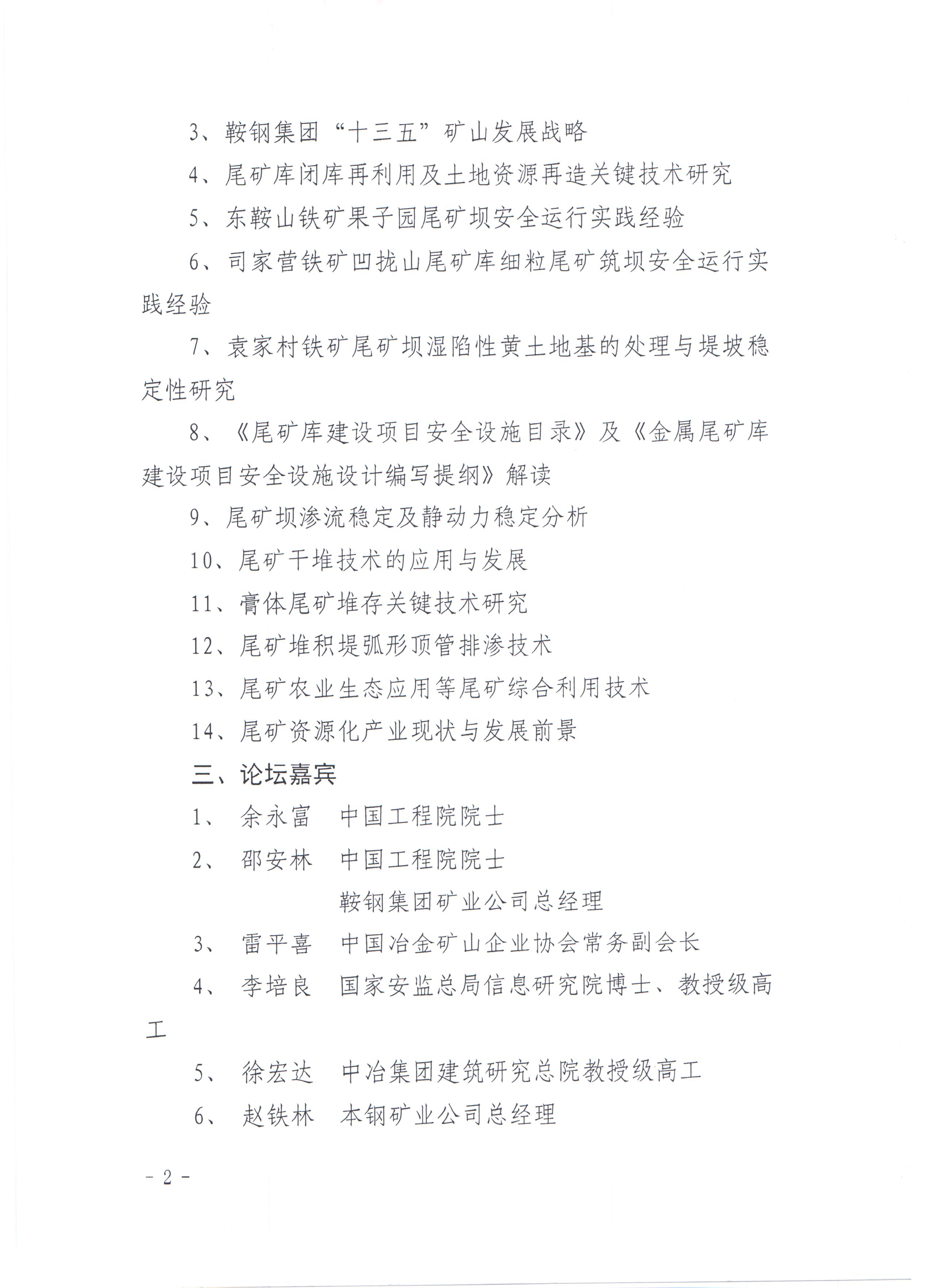 关于召开第九届全国尾矿库安全运行高峰论坛暨设备展示会的通知