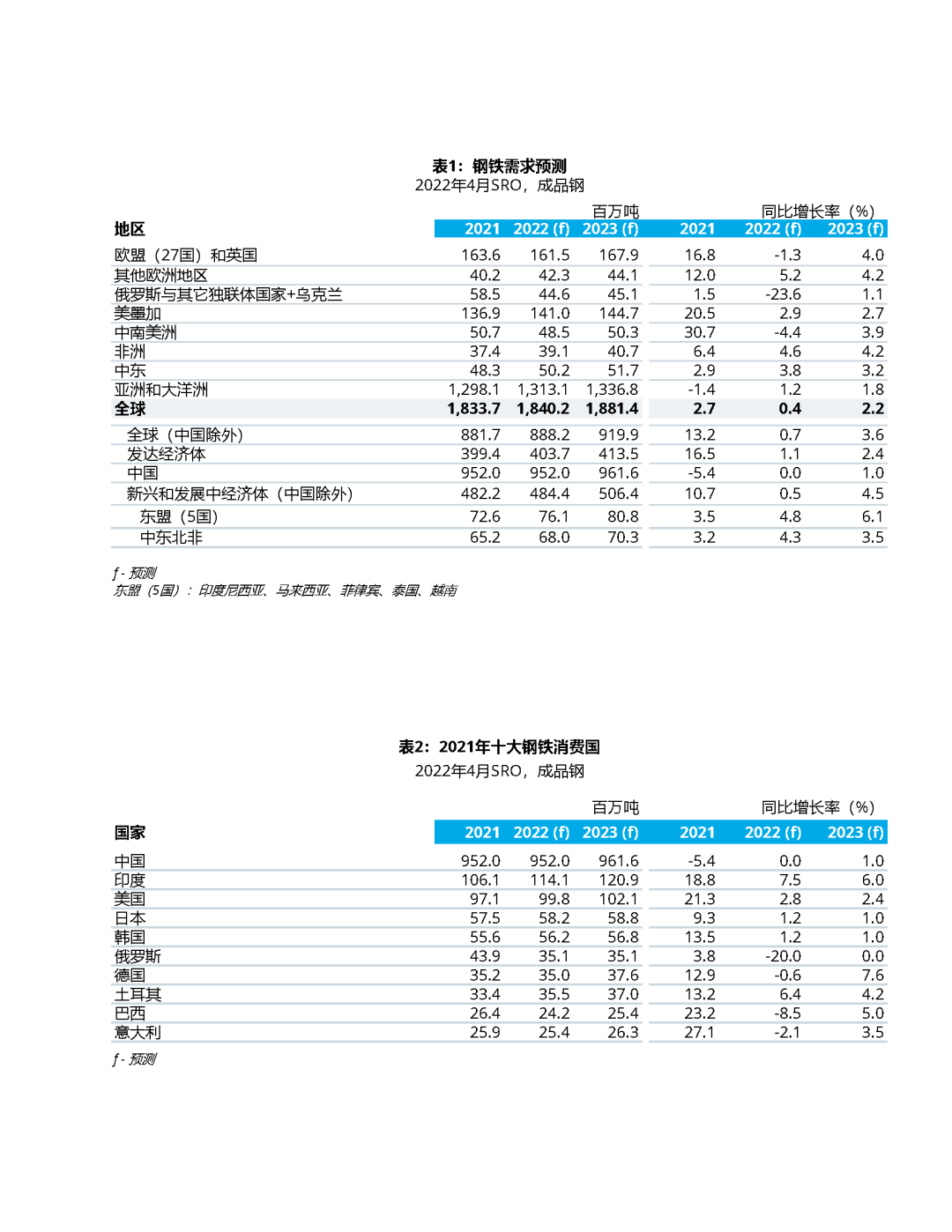 世界钢铁协会发布2022-2023年钢铁需求预测