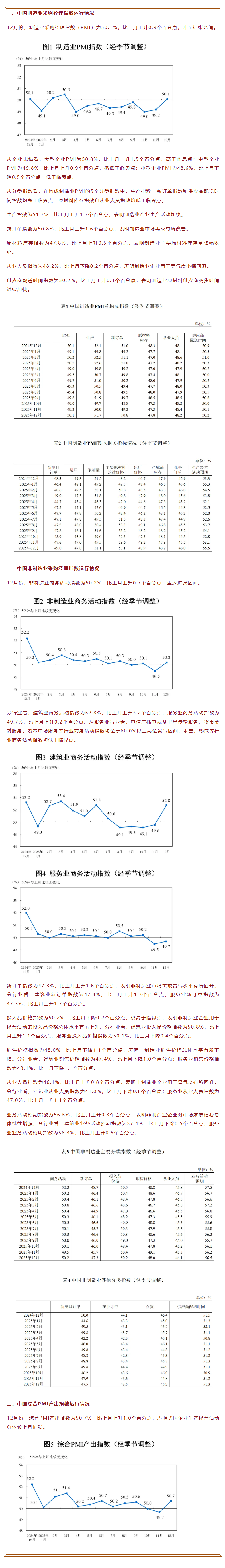 2025年12月中国采购经理指数运行情况
