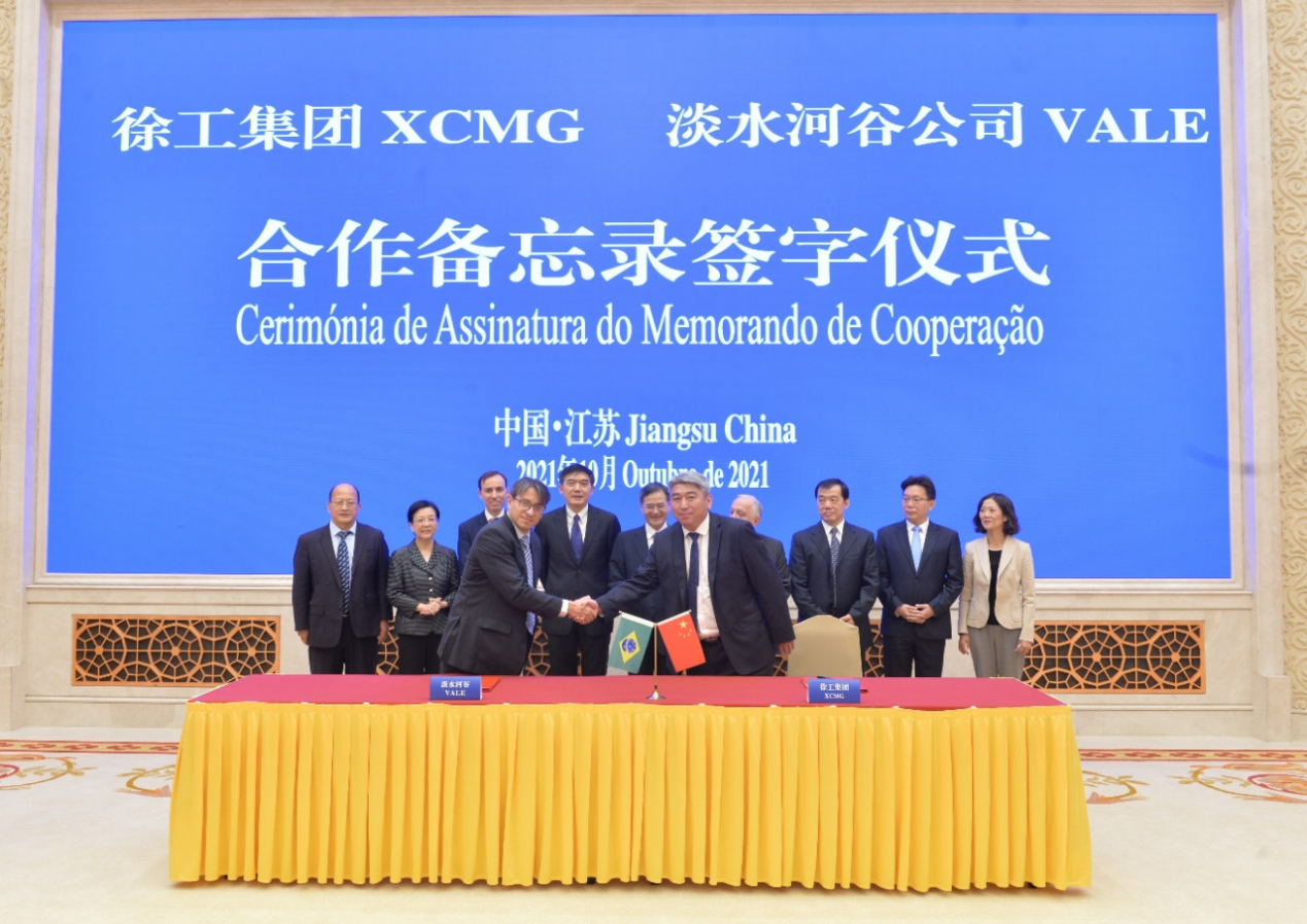 淡水河谷与徐工的合作备忘录在巴西驻沪总领事乐思哲、江苏省副省长惠建林、淡水河谷中国区总裁谢雪和徐工机械副总裁刘建森的见证下,由淡水河谷中国区采购总监安凯和徐州工程机械集团进出口有限公司副总经理商豹共同签署。