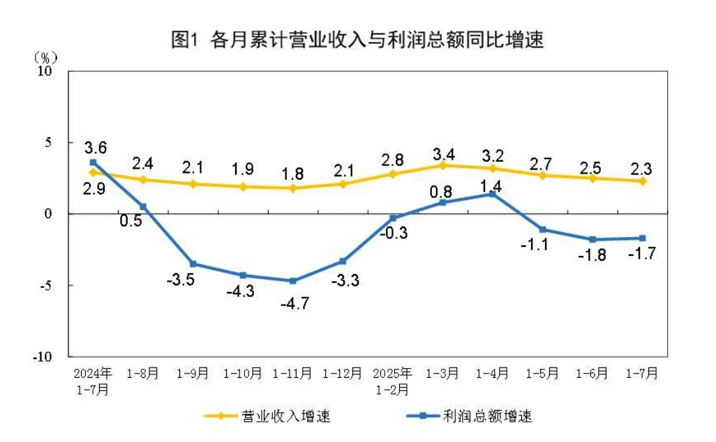 2025年1—7月份全国规模以上工业企业利润下降1.7%